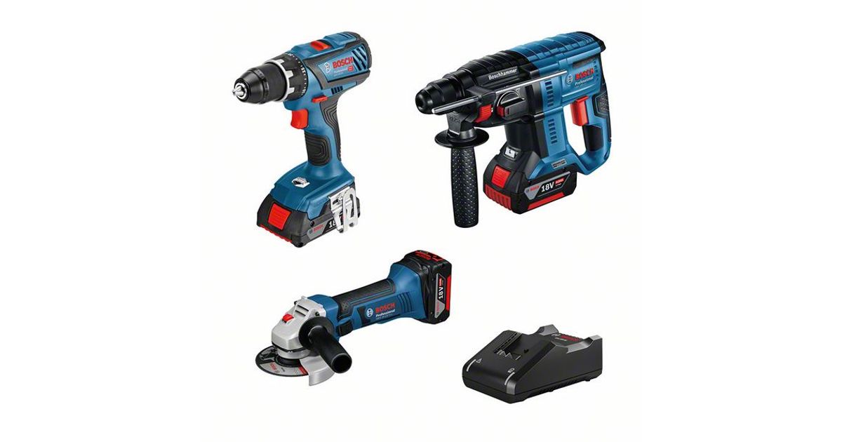18V tööriistade komplekt: akutrell Bosch GSR 18V-28 + akunurklihvija Bosch GWS 18-125 V-Li + akupuurvasar Bosch GBH 18V-21, (3x4.0Ah)