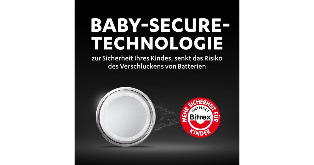 To ensure the safety of your children and to prevent them from swallowing the batteries, Duracell has developed a childproof technology: a layer on the back of the battery that tastes bitter. Duracell has also designed a child-resistant packaging with a double blister that cannot be opened by children without scissors.