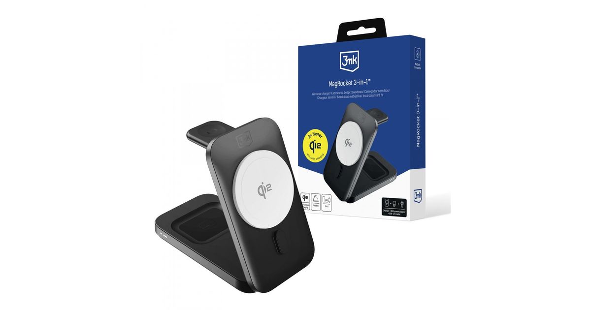 3MK Brodzratová Nabíječka-Magrocket 3-in-1, Qi2 Technologies, 15W, černá