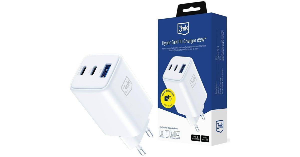 3mk Hyper GaN Charger 65W QC4+ biała - MT Shop