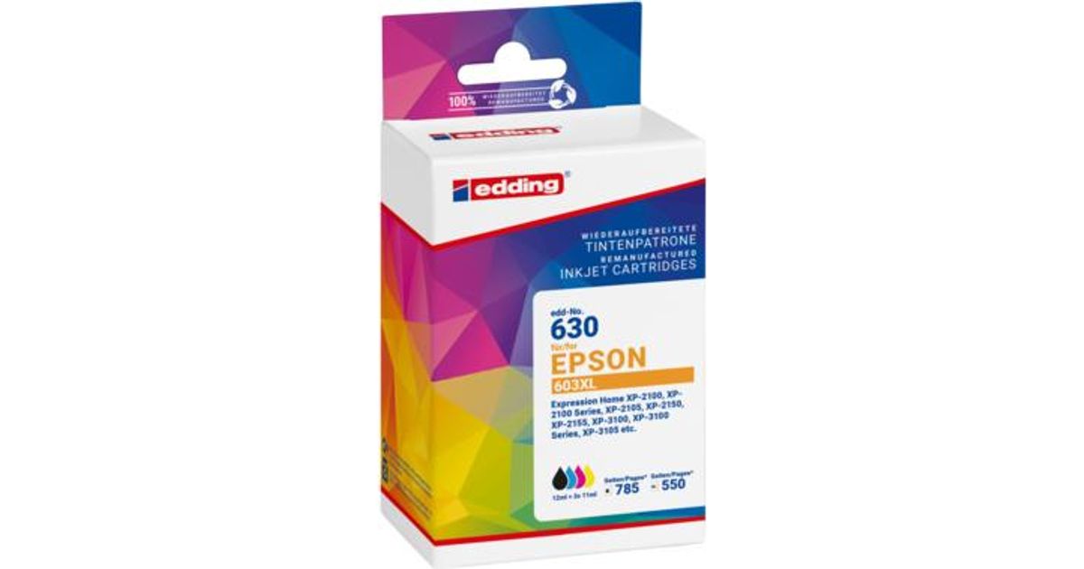 4 edding EDD-630 schwarz, cyan, magenta, gelb Tintenpatronen ersetzen EPSON 603XL Bk/C/M/Y (18-630)