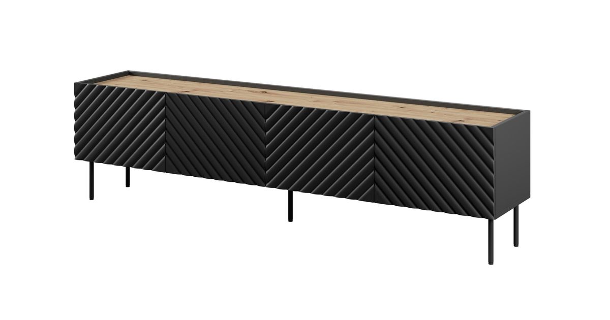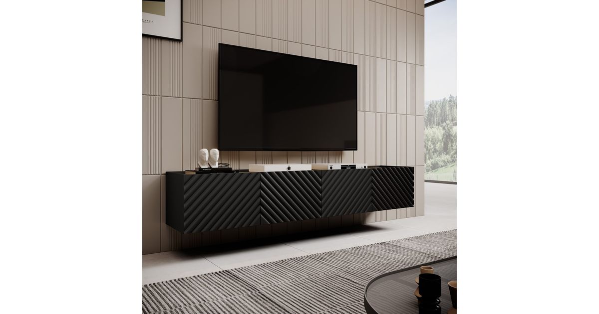 4D RTV cabinet ONDA 200x40x35-54 black (standing or wall mounted)