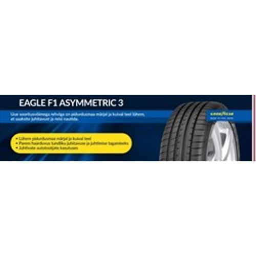 543911, Eagle F1 Asymmetric 3, GOODYEAR, Suvine, sõiduautod, FP, XL, AO, kütusesäästlikkus - C, haarduvus märjal - B, veeremüra ja takistuse mõõtmise klass - 72 dB (B) haarduvus lu