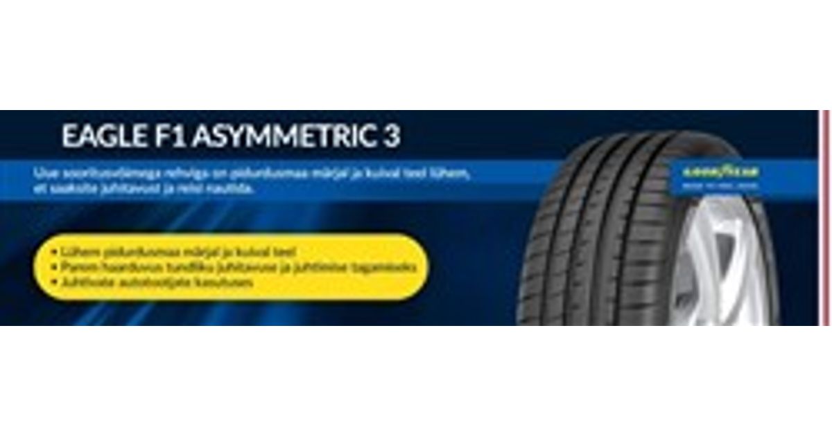 543911, Eagle F1 Asymmetric 3, GOODYEAR, Suvine, sõiduautod, FP, XL, AO, kütusesäästlikkus - C, haarduvus märjal - B, veeremüra ja takistuse mõõtmise klass - 72 dB (B) haarduvus lumes - Ei, haarduvus