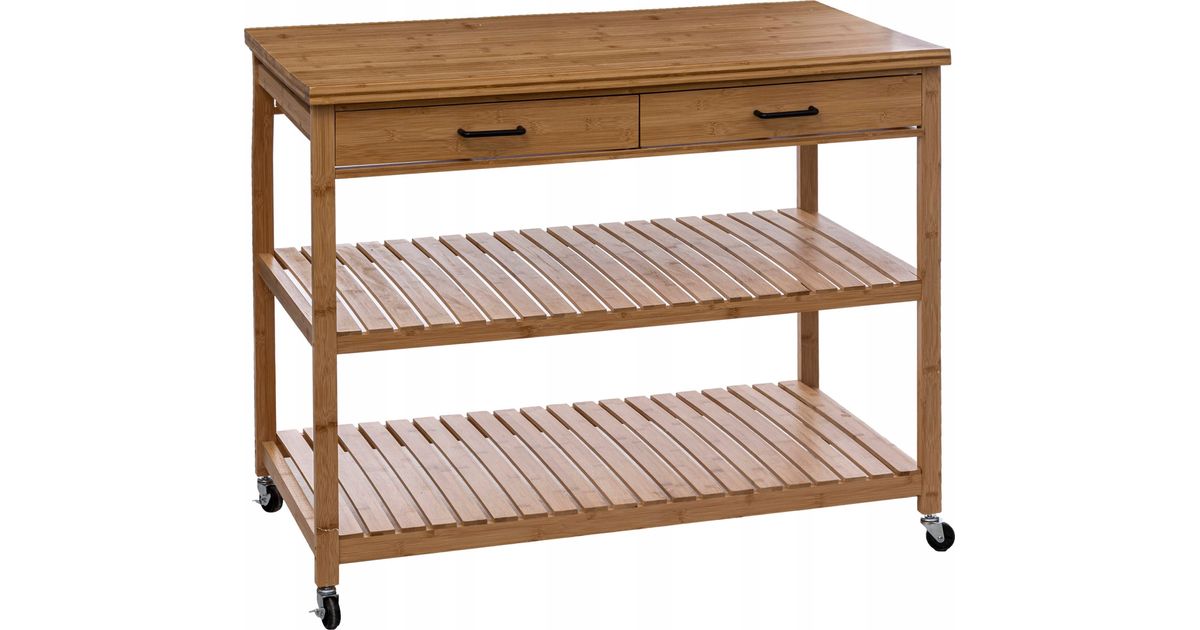 55 ratastel köögisaar, bambus, 108 x 60 x 90 cm - MT Shop