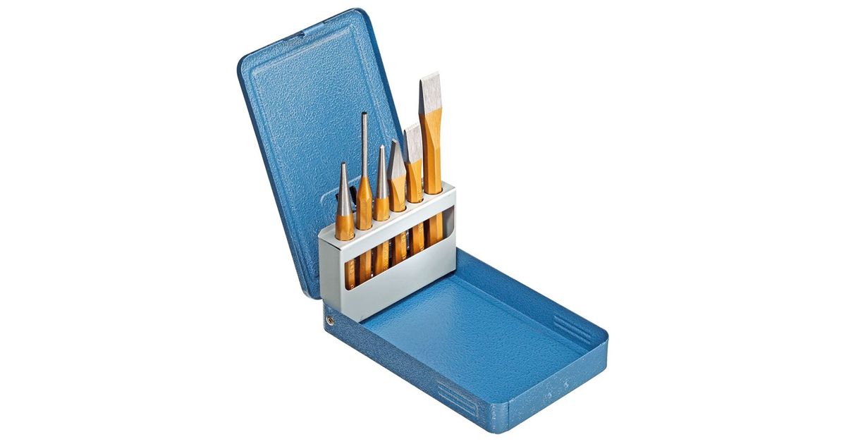 6-piece chrome vanadium chisels in a metal case