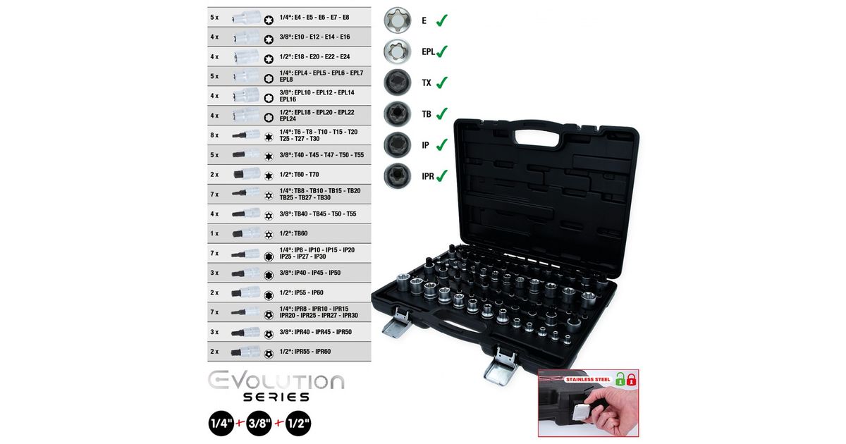 77-Os. 1/2"+3/8"+1/4" Auto Spetsiaal Padrunotsikute Komplekt Ks Tools