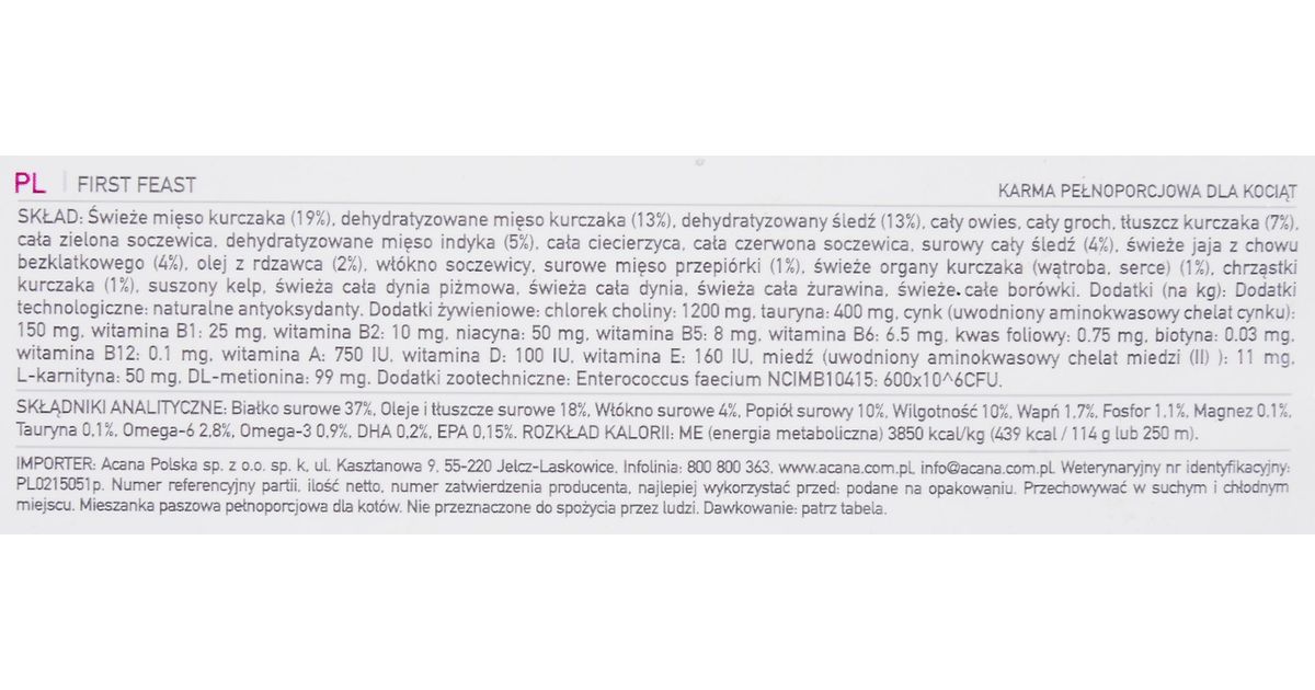 Acana First Feast kuivtoit kassile 1,8 kg Kassipoeg Kana