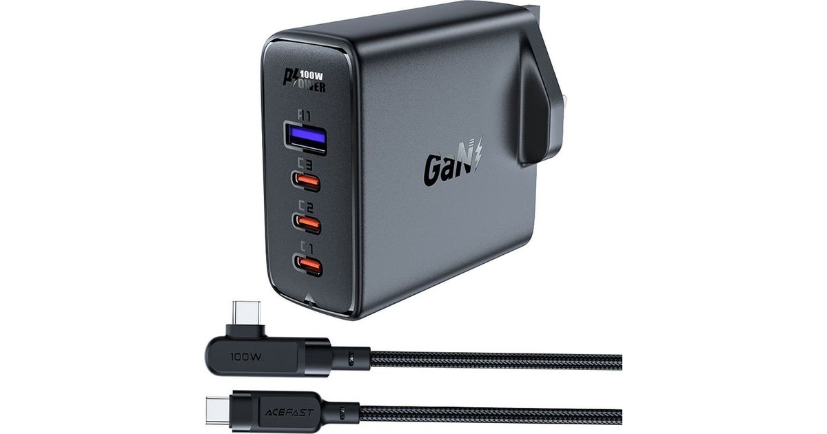 Acefast laadija GaN kiirlaadija UK Acefast A40 100W PD 3x USB-C 1x USB-A - must