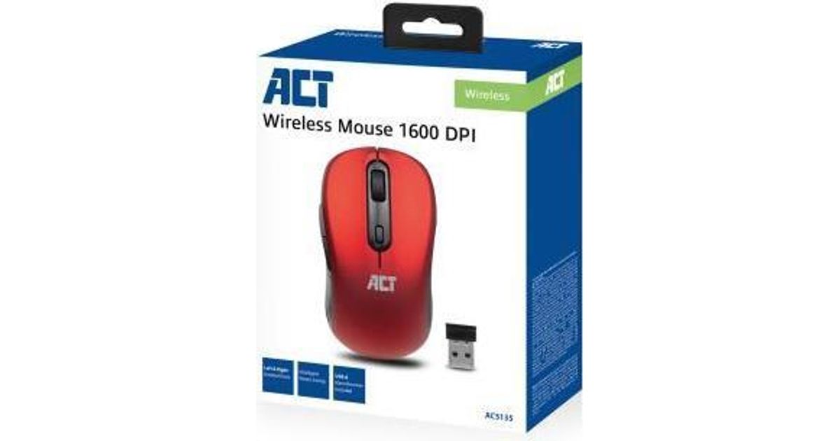 ACT AC5135, Parempoolne, Optiline, Raadioside, 1600 DPI, Punane