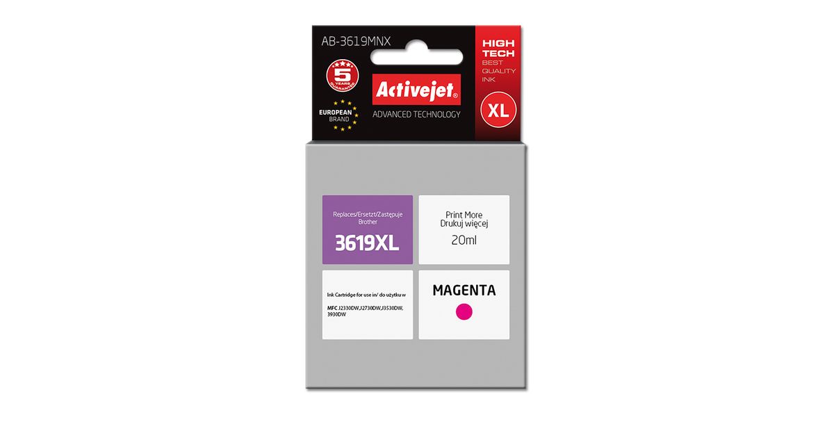 Activejet AB-3619MNX, High (XL) Yield, Värvipõhine tint, 20 ml, 1 tk, Üksik pakend