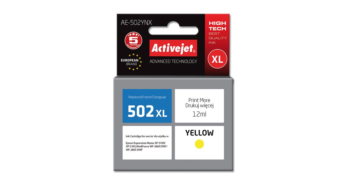 Activejet AE-502YNX, High (XL) Yield, Värvipõhine tint, 12 ml, 1 tk, Üksik pakend