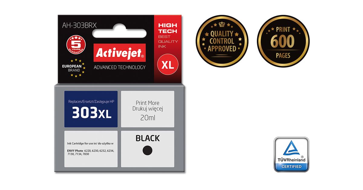 Activejet AH-303BRX, High (XL) Yield, Pigmendipõhine tint, 20 ml, 600 lehekülge, 1 tk, Üksik pakend