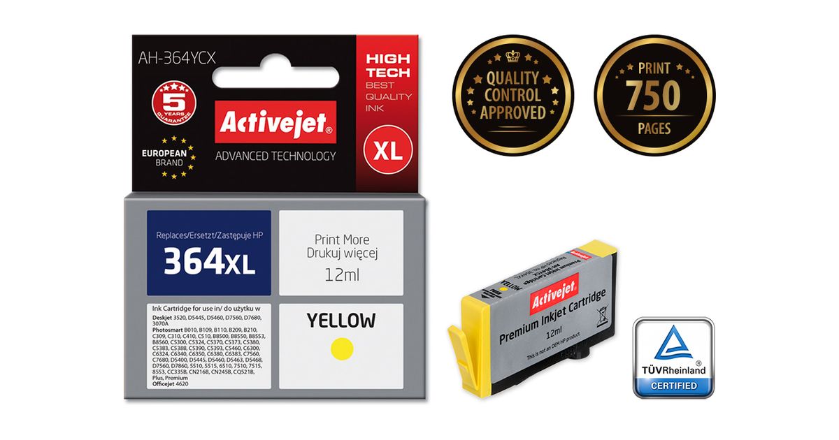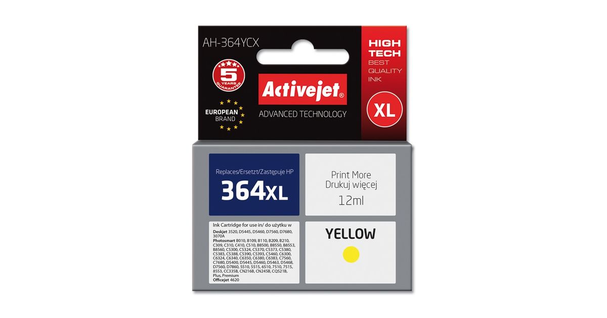 Activejet AH-364YCX, High (XL) Yield, Pigmendipõhine tint, 12 ml, 1 tk, Üksik pakend