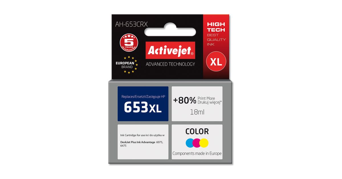 Activejet AH-653CRX, High (XL) Yield, Värvipõhine tint, 18 ml, 360 lehekülge, 1 tk, Üksik pakend