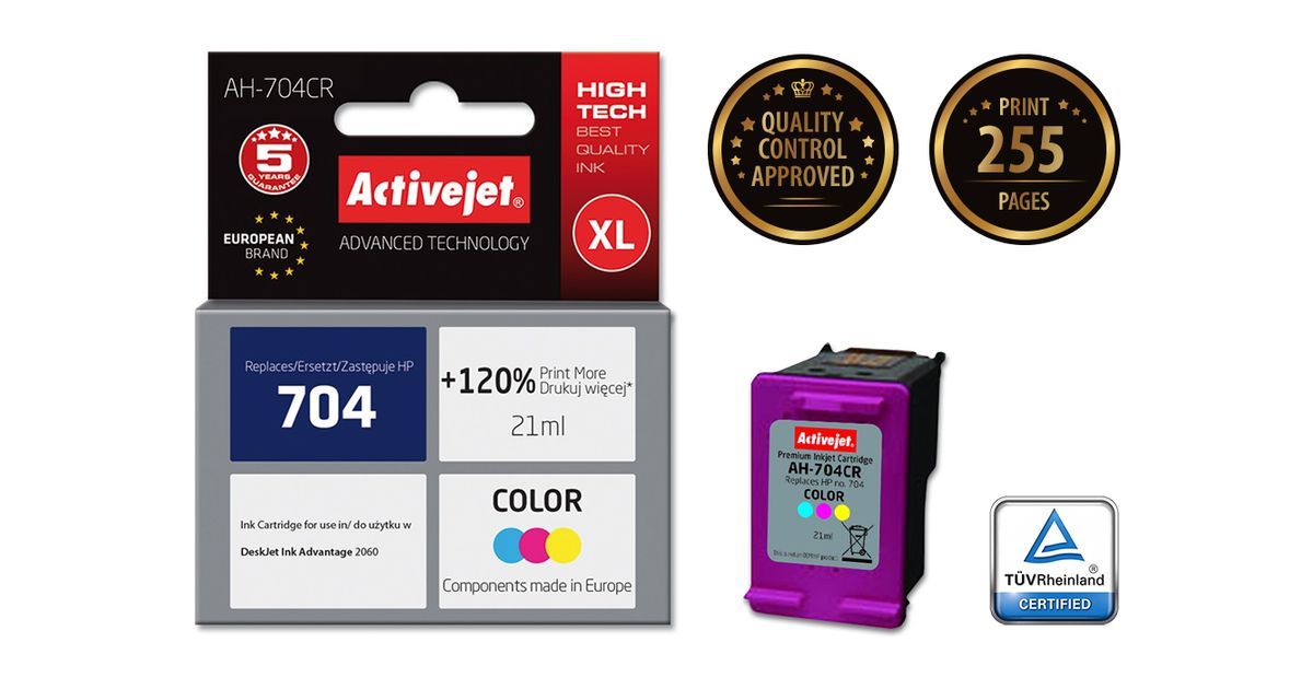 Activejet AH-704CR, High (XL) Yield, Pigmendipõhine tint, 21 ml, 1 tk