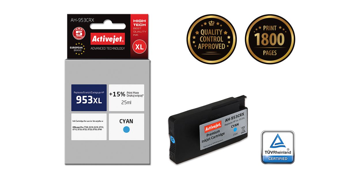 Activejet AH-953CRX, High (XL) Yield, Värvipõhine tint, 25 ml, 1800 lehekülge, 1 tk, Üksik pakend