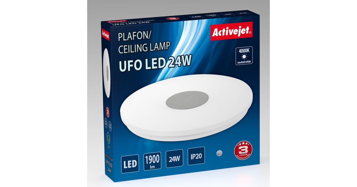 Activejet AJE-UFO 24W, 32 pirn(id), LED, Mittevahetatav(ad) pirn(id), 4000 K, 1900 lm, IP20