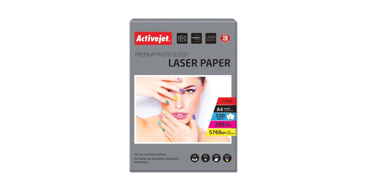 Activejet AP4-200G100L, Läige, 200 g/m², Laser, A4, 21x29.7 cm, Valge