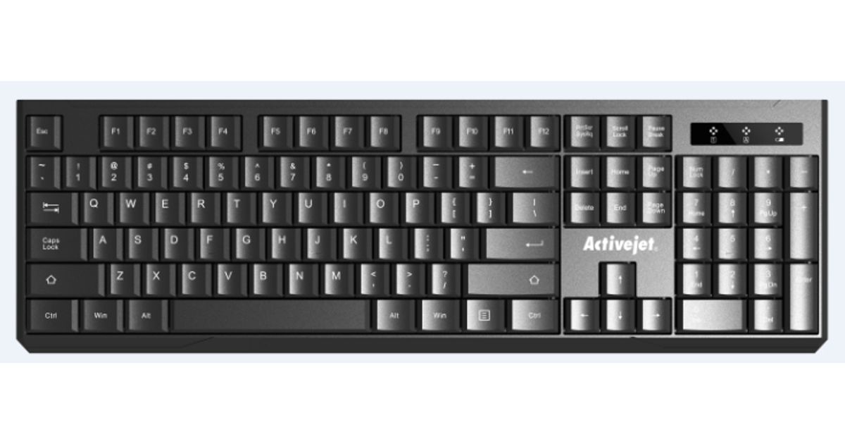 Activejet K-3911W, Full-size (100%), Juhtmevaba, Raadioside, Membraaniga klahvlüliti, QWERTY, Must