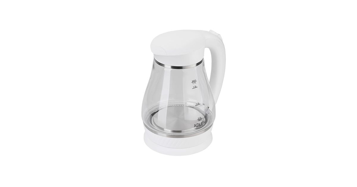 Adler AD 1274, 1,7 l, 2200 W, Läbipaistev, Valge, Klaas, Veetaseme indikaator