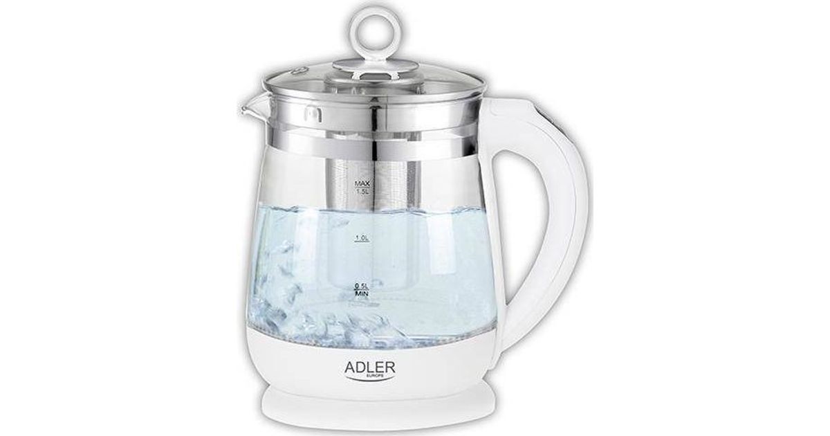 Adler AD 1299, 1,5 l, 1850 W, Valge, Klaas, Reguleeritav termostaat, Veetaseme indikaator