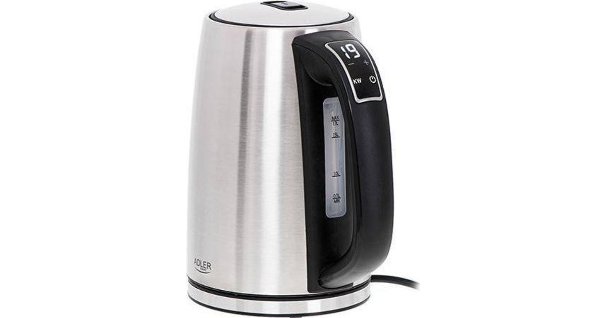 Adler AD 1340, 1,7 l, 2200 W, Must, Hõbe, Teras, Reguleeritav termostaat, Veetaseme indikaator