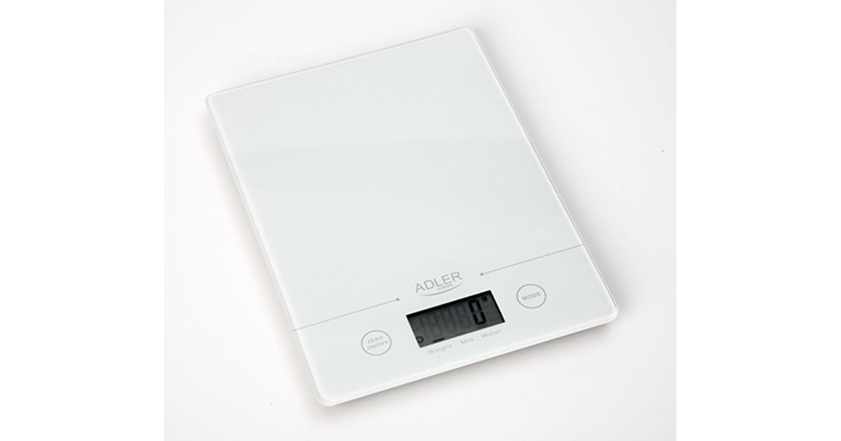 Adler AD 3138 w, Elektrooniline köögikaal, 5 kg, 1 g, Valge, Klaas, Tööpinna peal