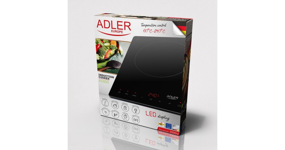 Adler AD 6513 pliidiraud Must Tööpinna peal 29 cm Tsooniga induktsioonplaat 1 tsoon(id)