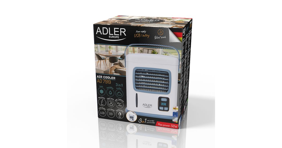 Adler AD 7919, Labadeta majapidamisventilaator, Hall, Valge, Laud, 50 dB, 60 m³/h, Nööbid