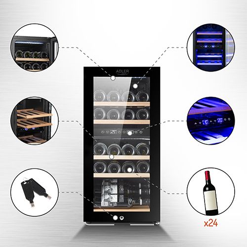 Adler AD 8080 veinikülmik Kompressoriga veinikülmik Eraldiseisev Must 24 pudel(id)
