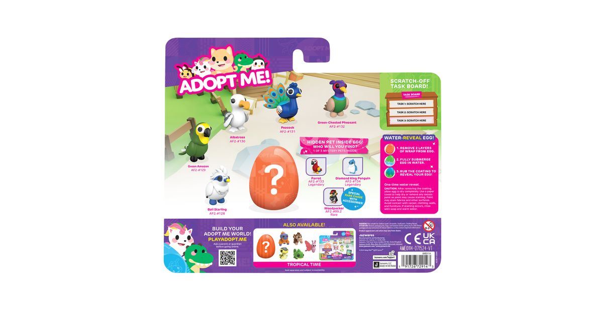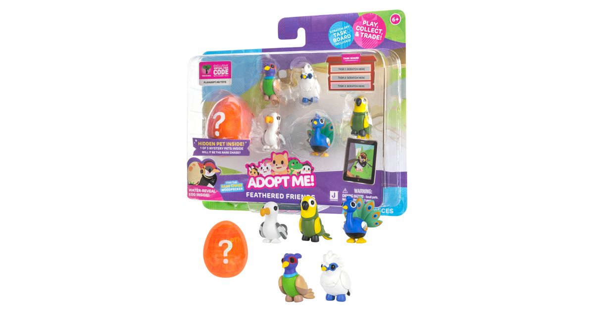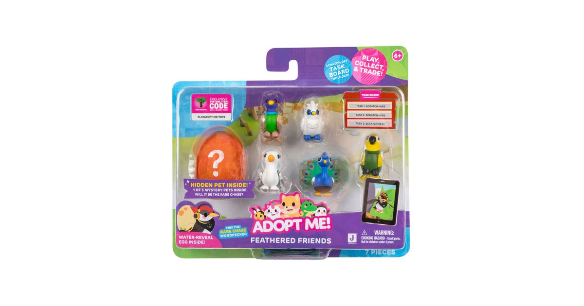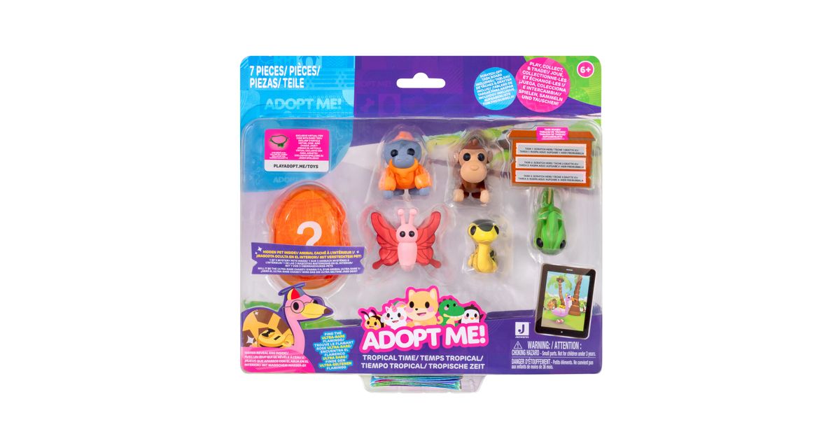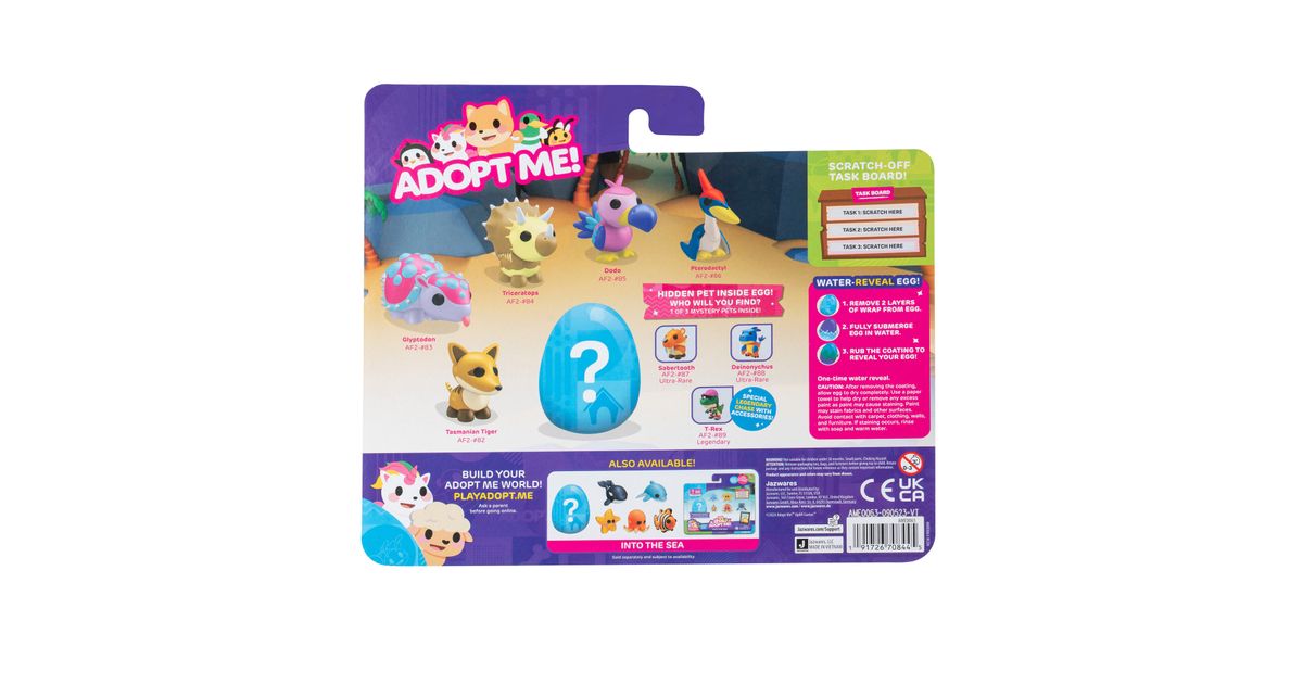 Kogege rõõmu väga ihaldatud lemmikloomade omamisest online-mängust Adopt Me! Mitmikpakiga saad 5 erinevat tegelast ja ühe üllatuslooma, keda armastada ja kelle eest hoolitseda. Temaatilisest munast leiad ühe kolmest 5 cm suurusest plastikust salapärasest lemmikloomast. Boonusena sisaldab multipakk ühte eksklusiivset virtuaalset esemekoodi. Need kollektsioneeritavad esemed sobivad ideaalselt nii mängimiseks kui ka näitamiseks!