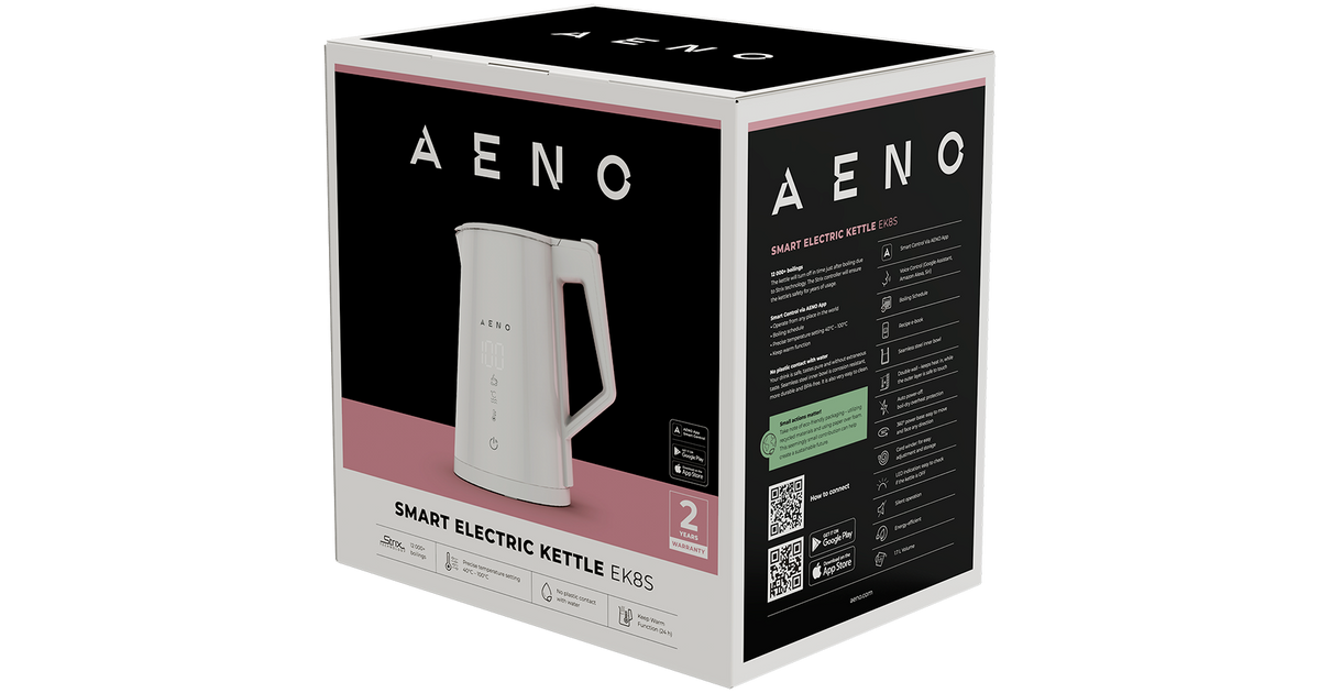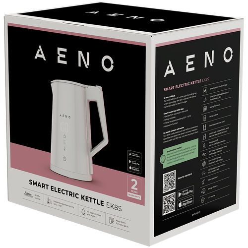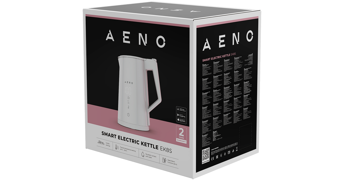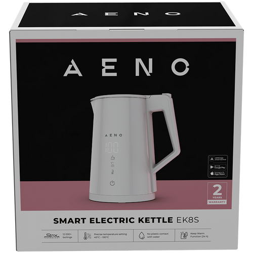 AENO Electric Kettle EK8S Smart: 1850-2200W, 1.7L, Strix, Double-walls, Temperature Control, Keep warm Function, Control via Wi-Fi, LED-display, Non-heating body, Auto Power Off, Dry tank Protection