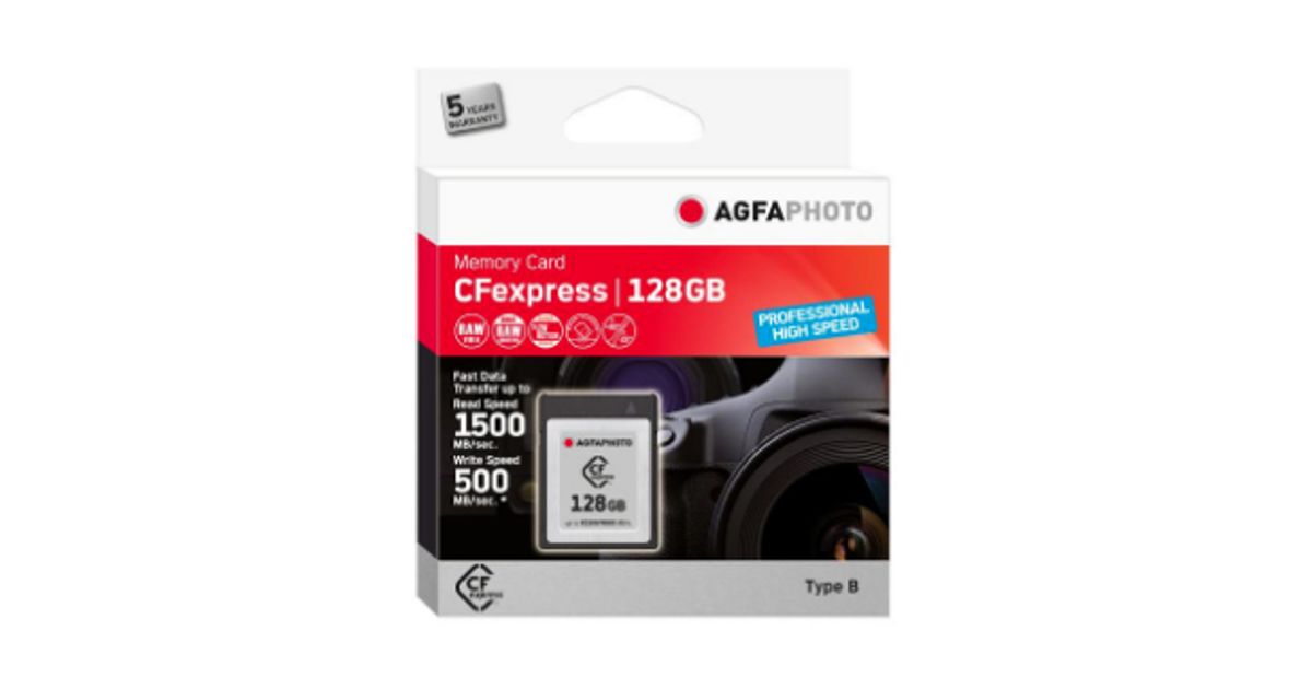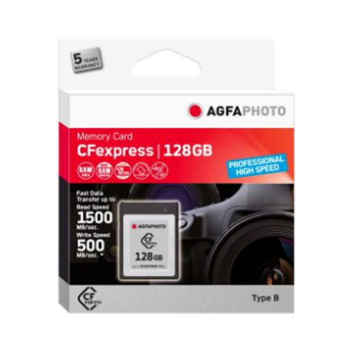 AgfaPhoto CFexpress Professional, 128 GB, CFexpress, NAND, 1500 MB/s, 500 MB/s, Külmakindel, Kuumakindel, Löögikindel, Röntgenkiirekindel