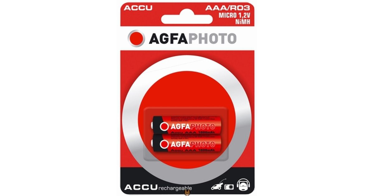 AgfaPhoto NiMh Micro 1000 mAh, Laaditav patarei, AAA, Nikkel-metallhüdriid (NiMH), 1,2 V, 2 tk, 1000 mAh