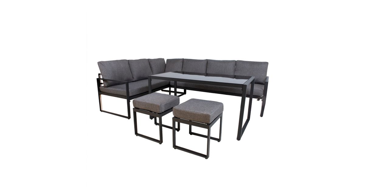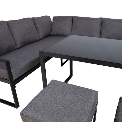 Aiamööblikomplekt LEIPZIG laud, nurgadiivan ja 2 tumbat