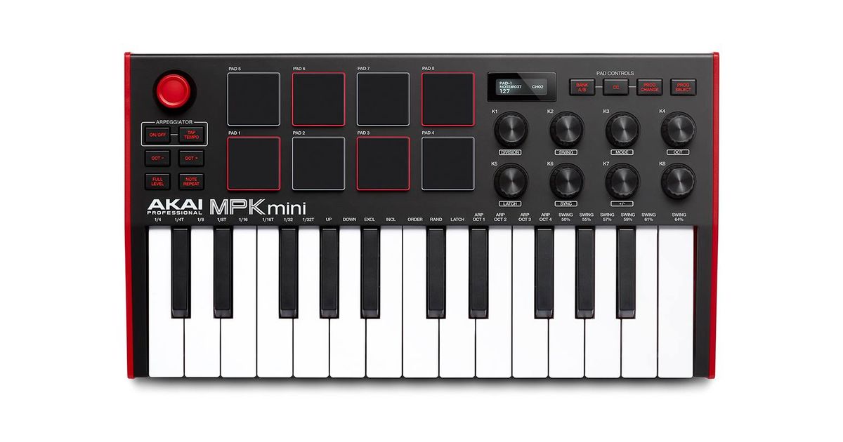 Akai MPK Mini MK3, 25 klahvid, Nööbid, Pöörlev, Must, Must, USB, 318 mm