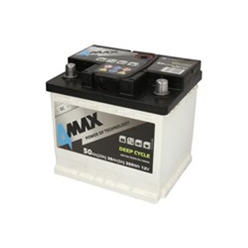 Aku 4MAX 12V 50Ah DEEP-CYCLE (R+ standardne terminal) 207x175x190 B13 - kinnitusäärik 10,5 mm (käivitusaku)