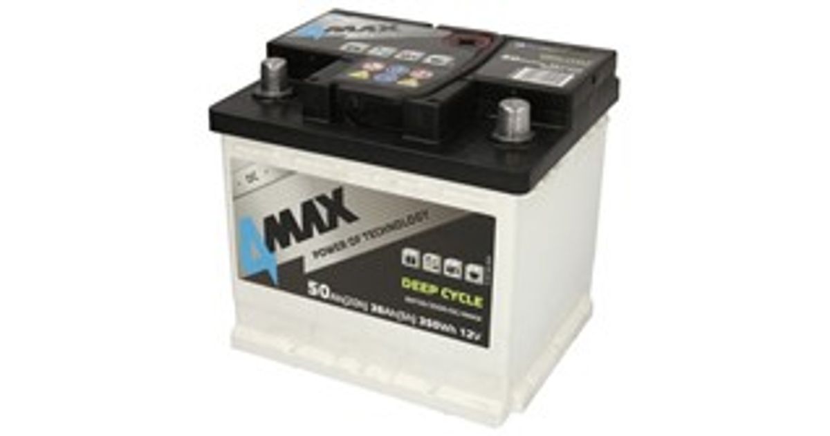 Aku 4MAX 12V 50Ah DEEP-CYCLE (R+ standardne terminal) 207x175x190 B13 - kinnitusäärik 10,5 mm (käivitusaku) - Akud - Akud ja laadijad - Autokaubad - MT Shop
