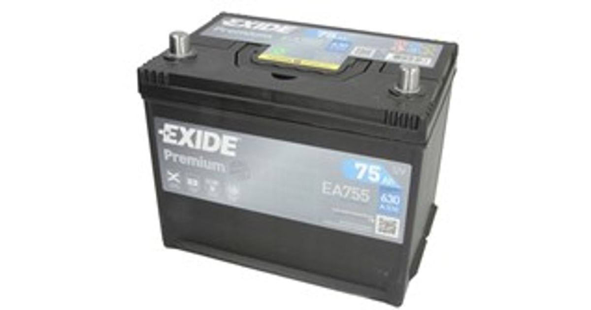 Aku EXIDE 12V 75Ah/630A PREMIUM (L+ en) 270x173x222 (käivitusaku) - Akud - Akud ja laadijad - Autokaubad - MT Shop