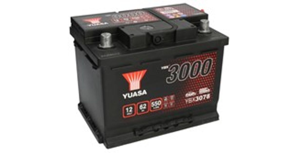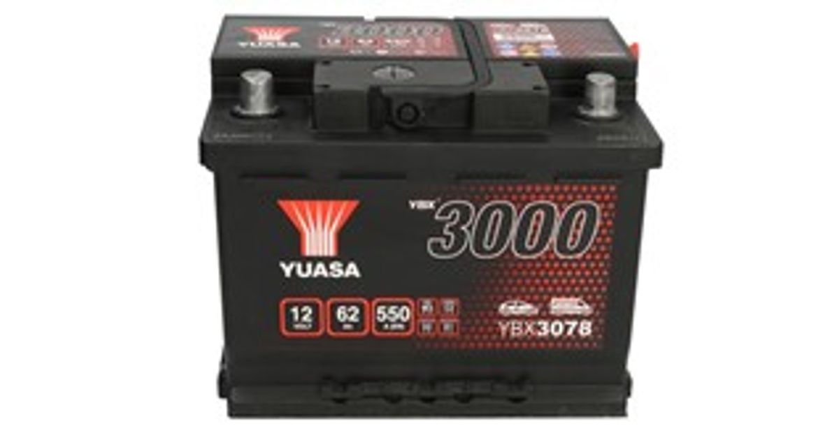 Akumulator YUASA 12V 62Ah/550A YBX3000 SMF (L+ standardowy) 243x175x190 B13 (rozruchowy) - Akud - Akud ja laadijad - Autokaubad - MT Shop