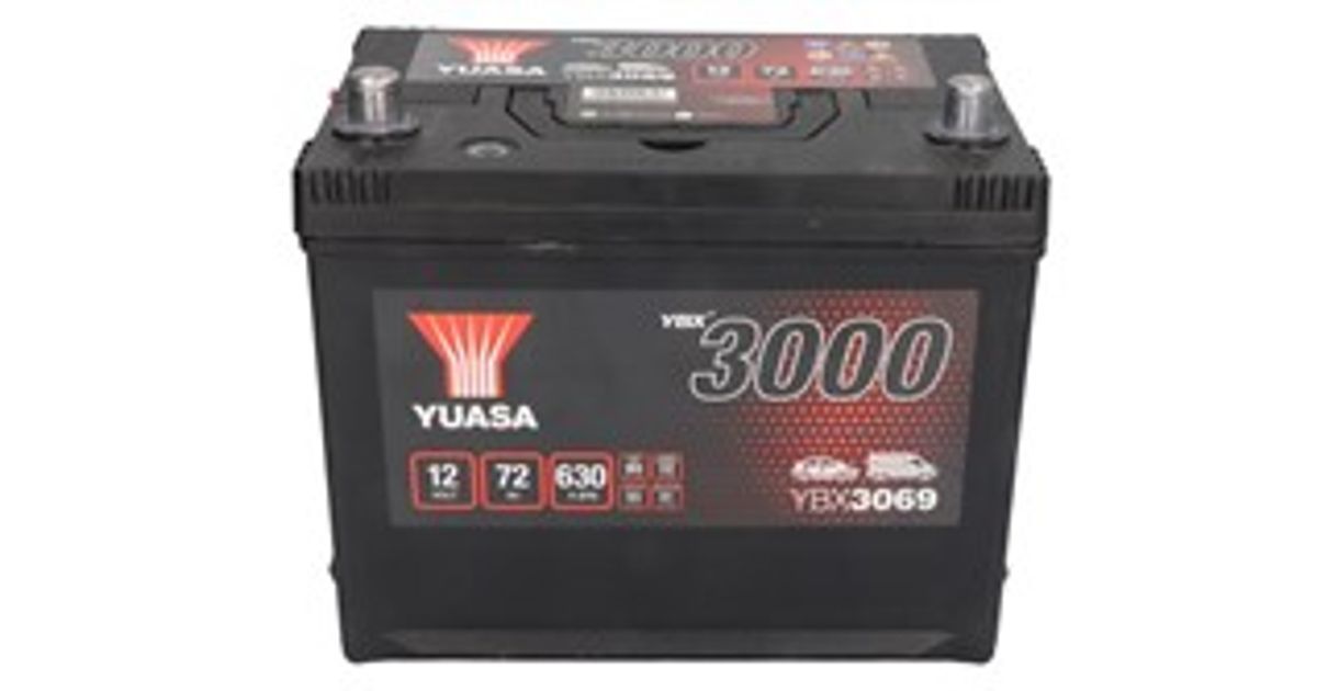 Akumulator YUASA 12V 72Ah/630A YBX3000 SMF (L+ standardowy) 269x174x223 B9 (rozruchowy) - Akud - Akud ja laadijad - Autokaubad - MT Shop