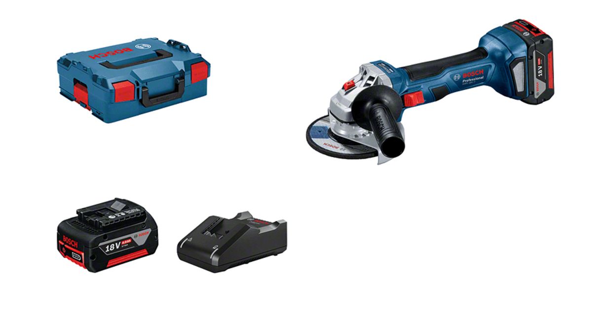Bosch GWS 18V-7 Professional, 11000 RPM, 12,5 cm, Patarei, 4 Ah, Harjavaba mootor