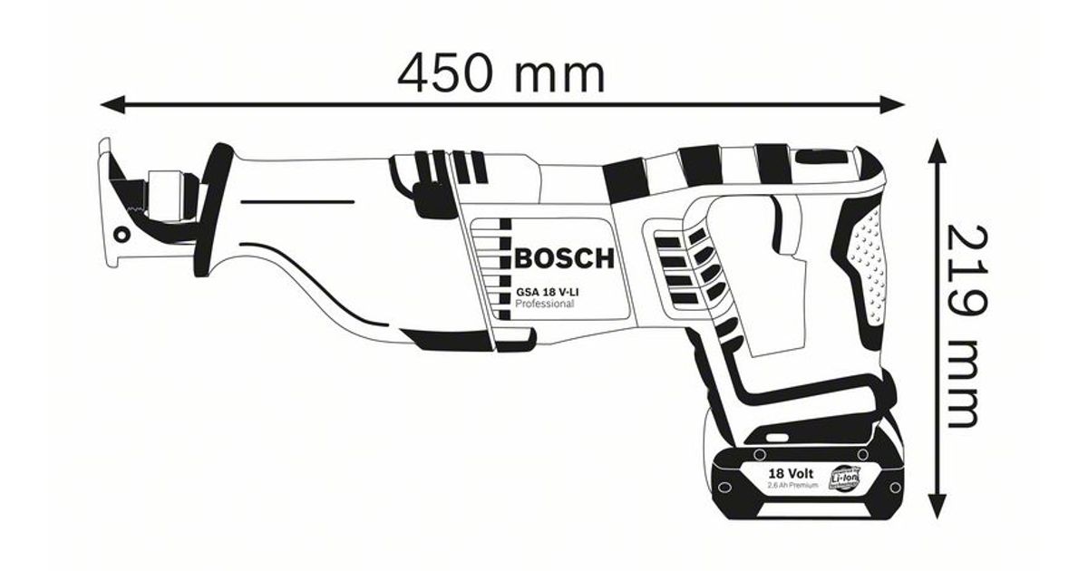 Akutiigersaag Bosch GSA 18V-LI, SOLO, 18V, 2.400 - 2.700 min.-1