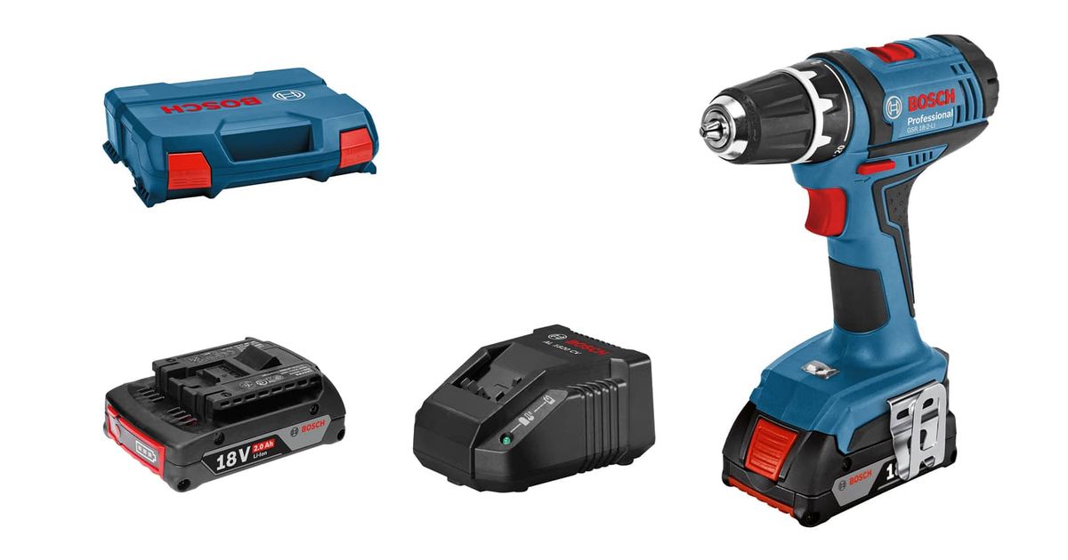 Akutrell Bosch GSR 18-2-LI, (2x2.0Ah), GAL 18V-20, 0-450 / 0-1.400 min.-1