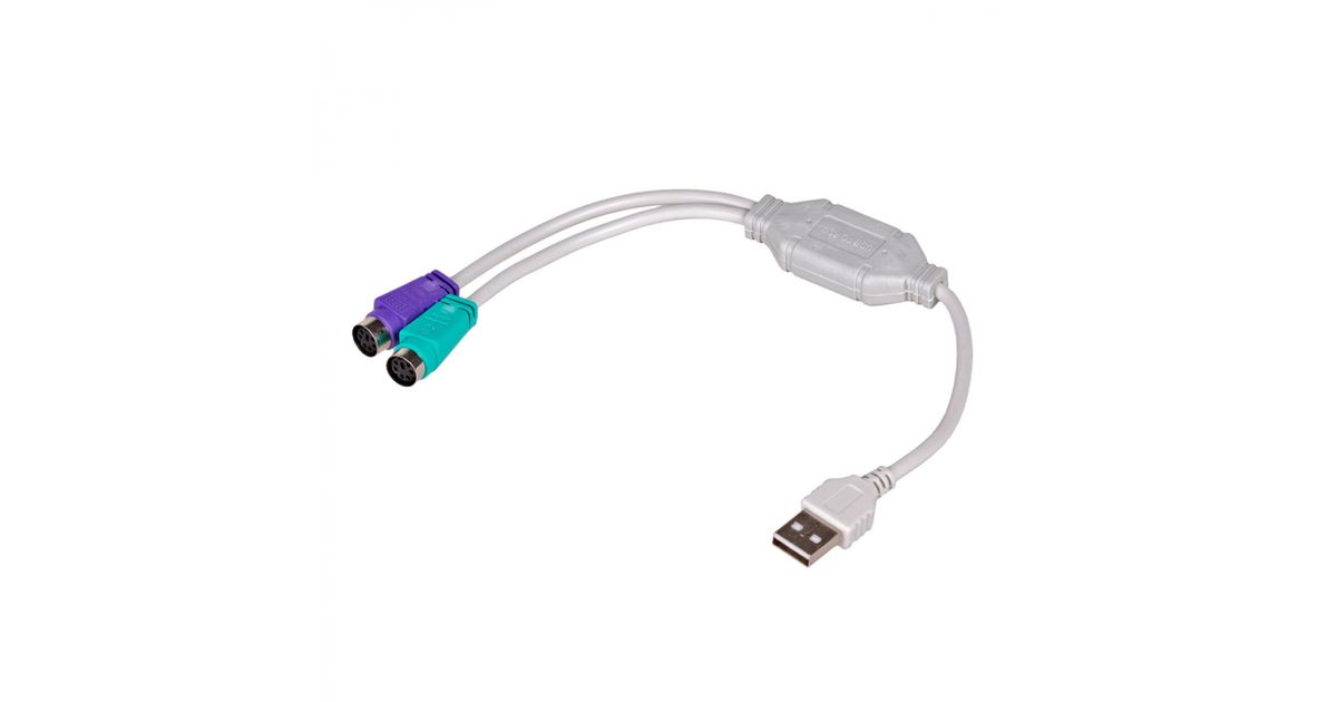 Akyga AK-AD-15, 0,25 m, 2x 6-p Mini-DIN, USB A, Meessoost, Naissoost, Valge