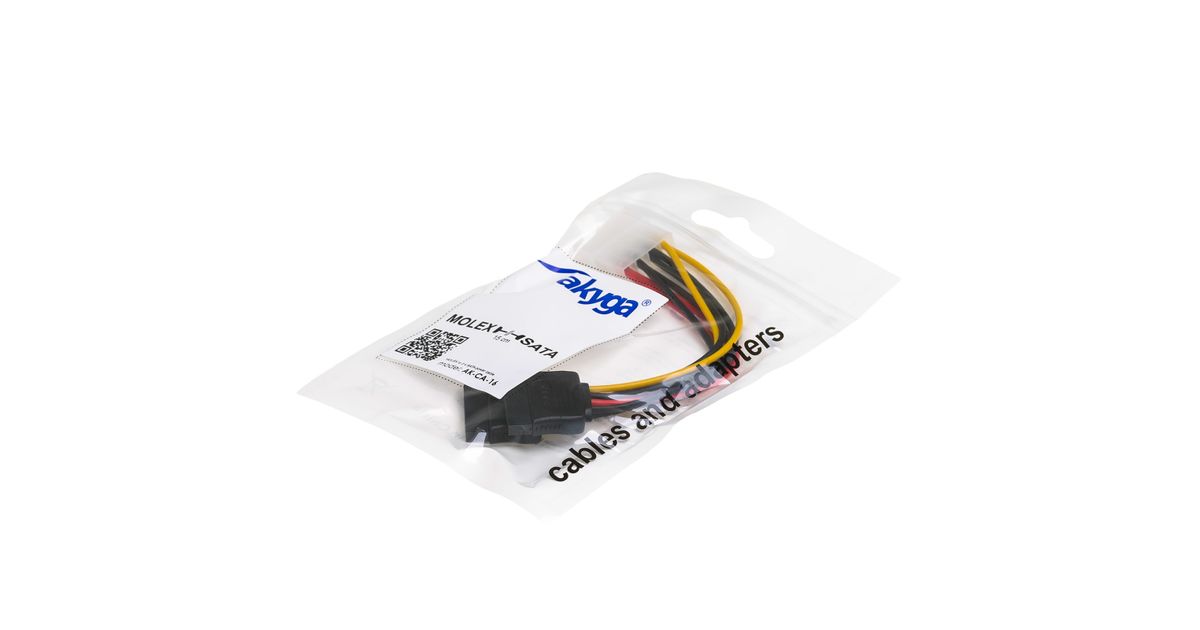 Akyga AK-CA-16, 0,15 m, Molex (4-pin), 2 x SATA 15-pin, 90 mm, 98 mm, 1,3 cm