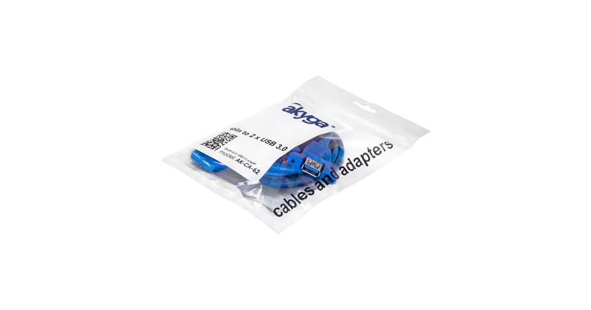 Akyga AK-CA-62, 65 m, USB 3.0 19-pin, 2 x USB 3.0, USB 3.2 Gen 1 (3.1 Gen 1), Meessoost, Sinine
