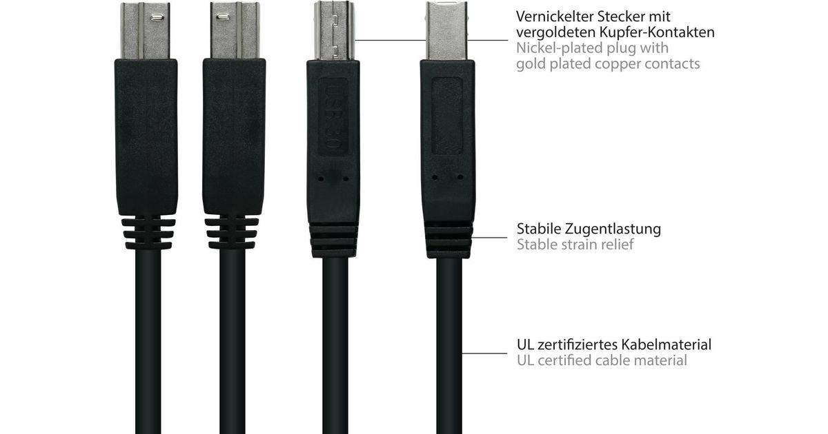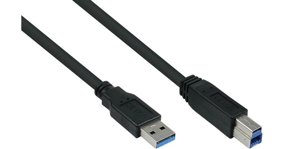 Alcasa UK30P-AB-018S, 1,8 m, USB A, USB B, USB 3.2 Gen 1 (3.1 Gen 1), 5000 Mbit/s, Must