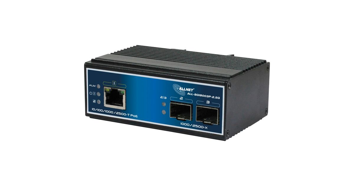 ALLNET Switch unmanaged industrial 3 Port 2.5GBit 90W / 1x PoE BT / 2x SFP 1G/2,5G / Lüfterlos / DIN / IP40 / "ALL-SGI8003P-2.5G (ALL-SGI8003P-2.5G)